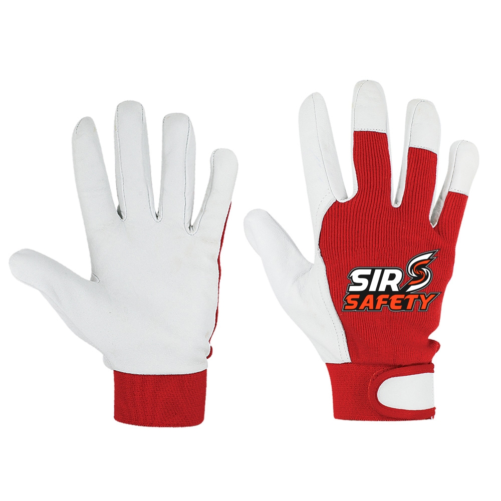 Goat/Sheep Leather Glove Red Azo free cotton fabric back 3 finger tips.
