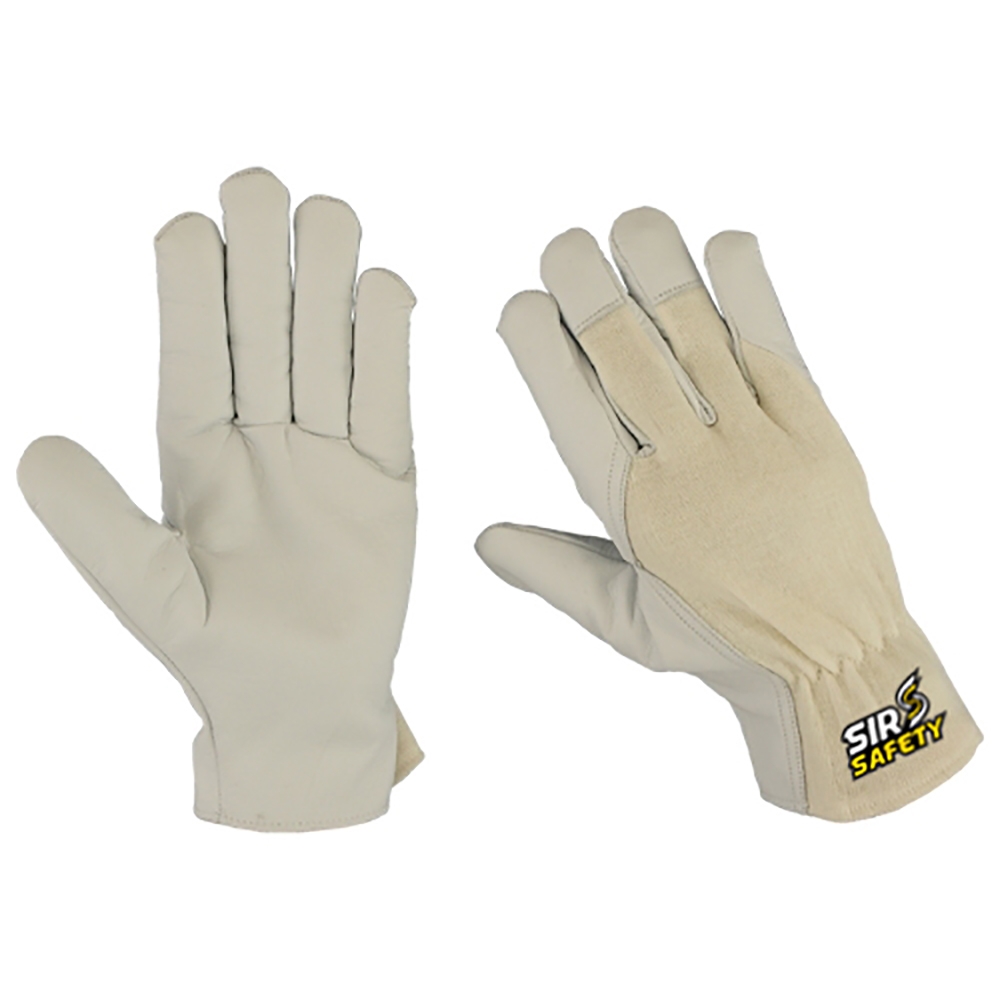 Palm goat skin leather back interlock two tips wing thumb index finger shirred elastic hem around side